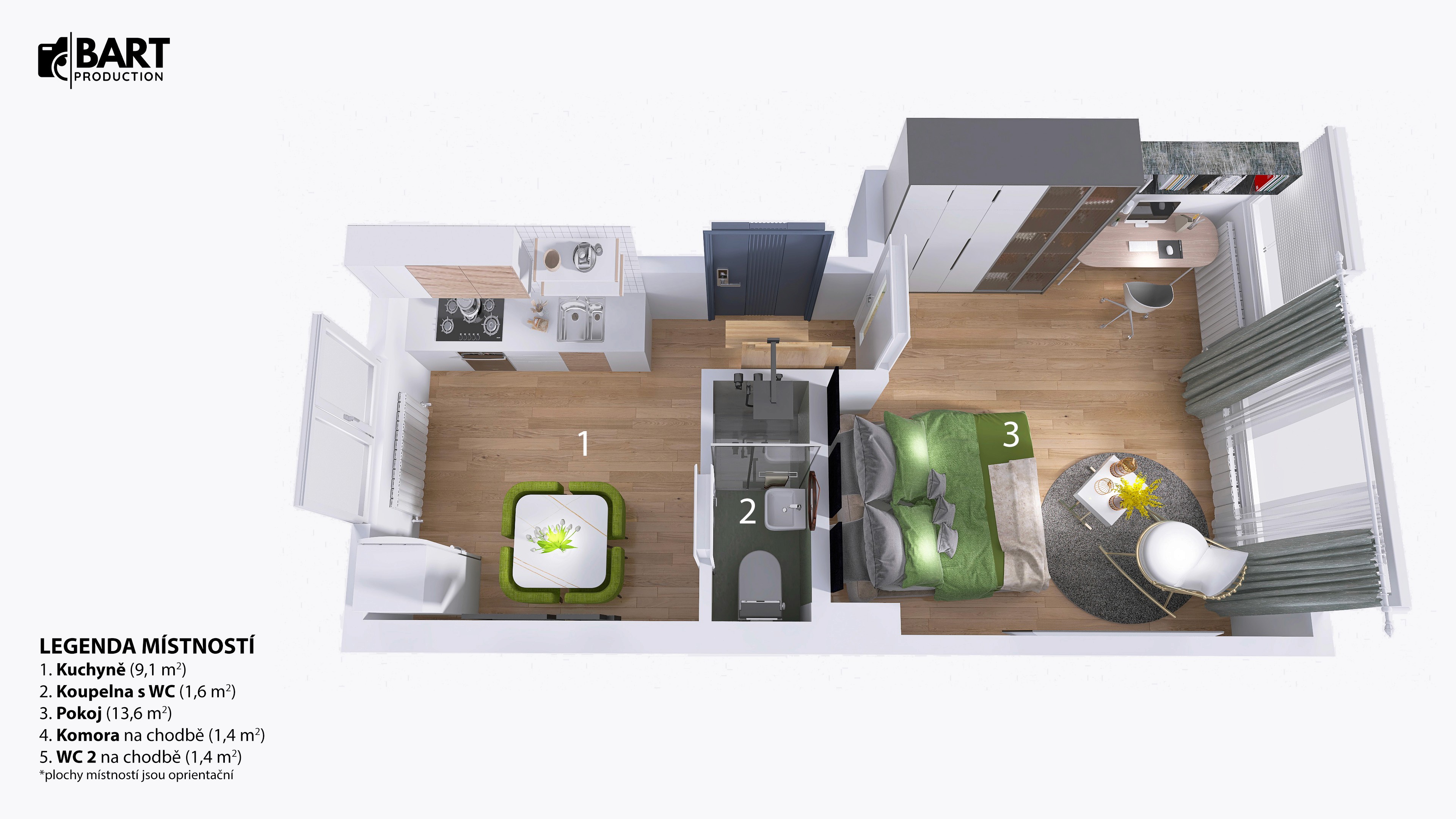 • Pokoj – 13,6 m²