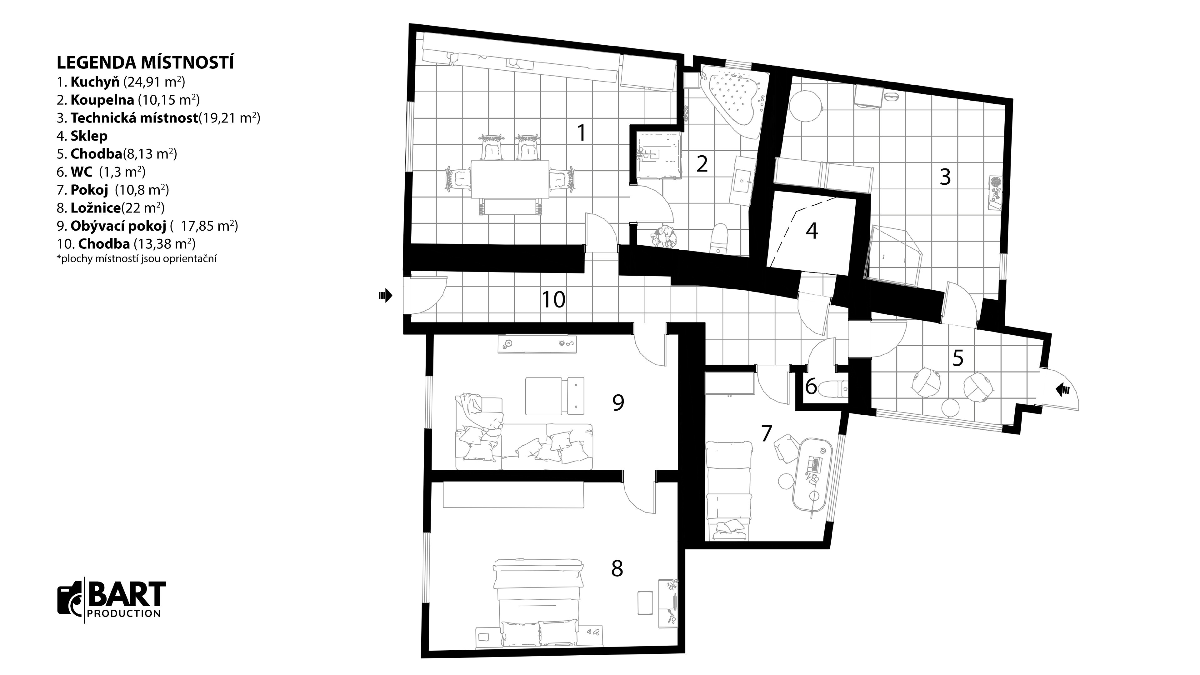 Dispozice a interiér (cca 138 m²)